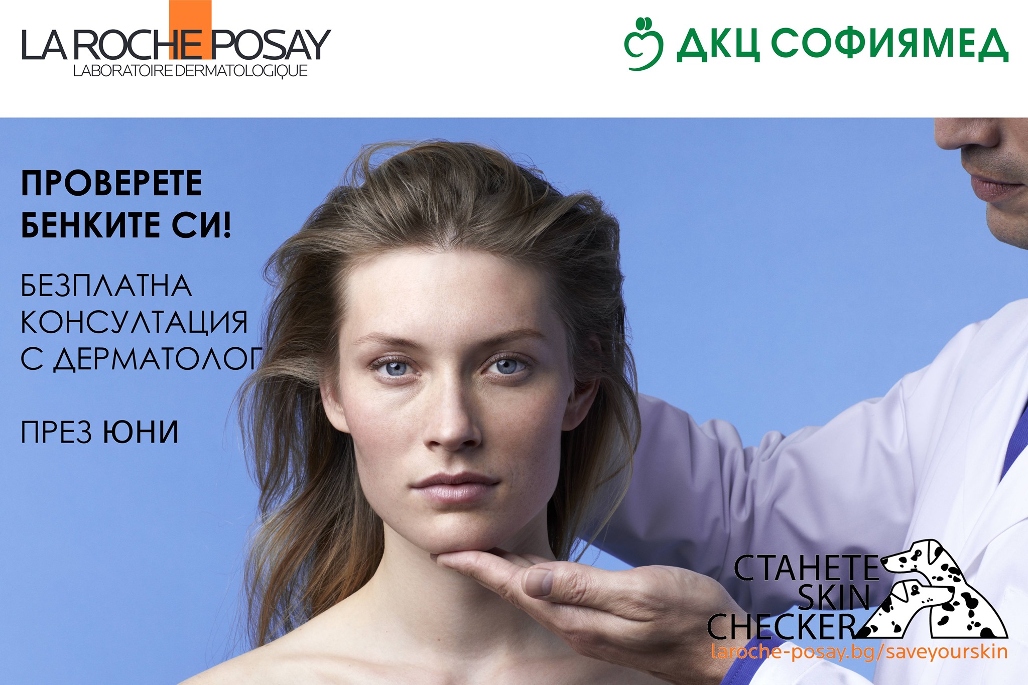 ДКЦ „Софиямед“ става за поредна година част от глобалната кампания на La Roche-Posay Bulgaria -„Станете Skin Checker” за насърчаване на хората по цял свят да проверяват редовно кожата си за превенция на кожния рак. Може да проверите бенките си и други кожни образувания чрез безплатен преглед от дерматологът в ДКЦ "Софиямед" д-р Виктория Зафирова.