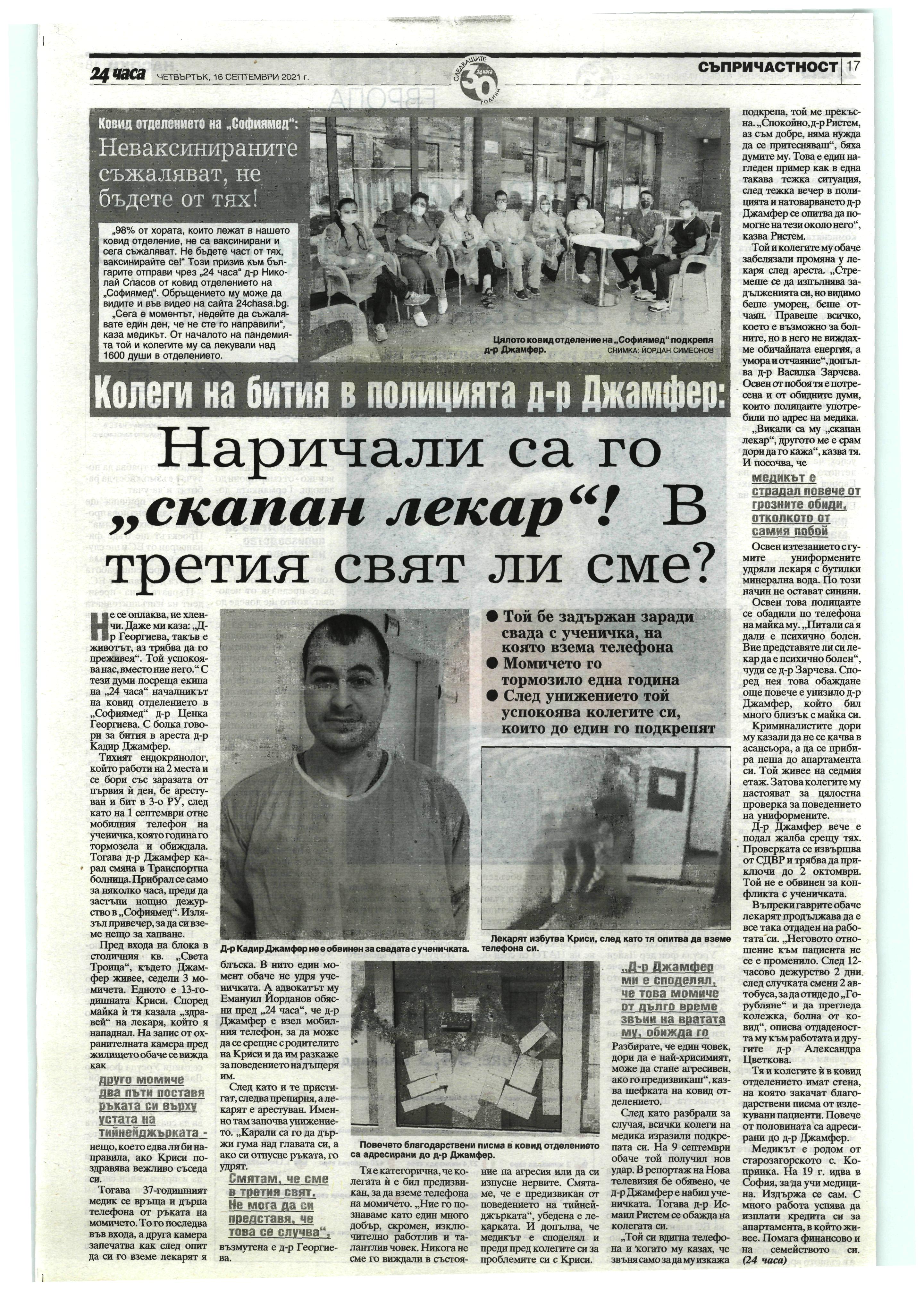 "98% от хората, които лежат в нашето ковид отделение, не са ваксинирани и сега съжаляват. Не бъдете част от тях, ваксинирайте се!" Този призив към българите отправи чрез "24 часа" д-р Николай Спасов от ковид отделението на "Софиямед". Обръщението му може да видите и във видео на сайта 24chasa.bg.