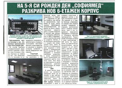 По случай празника Университетският медицински комплекс открива нова 6-етажна сграда. Корпусът се намира на бул. "Г.М. Димитров" 16 и е построен по утвърдените инженерни и архитектурни стандарти, съчетавайки най-съвременните енергоефективни решения и модерен интериор съобразен с всички медицински изисквания.