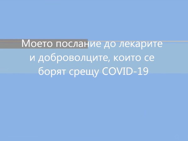 Специален видео поздрав получиха медиците от УМБАЛ "Софиямед", подготвен от ученици от 58ОУ "С. Румянцев", гр. София, във връзка с усилията на многобройните здравни работници и доброволци, които се борят срещу коронавируса.