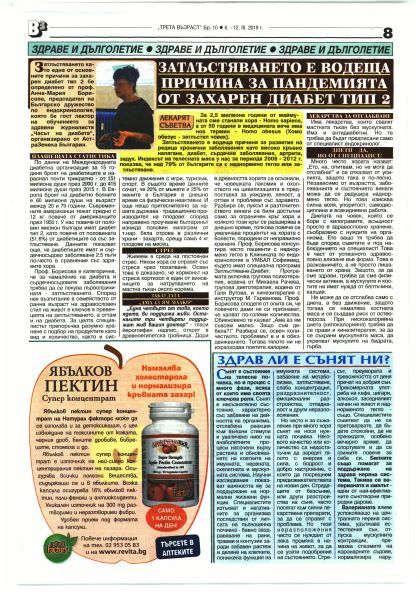 Затлъстяването като една от основните причини за захарен диабет тип 2 бе определено от проф. Анна-Мария Борисова, председател на Българско дружество по ендокринология, която бе гост лектор на обучението за здравни журналисти "Часът на диабета", организирано от АстраЗенека България.