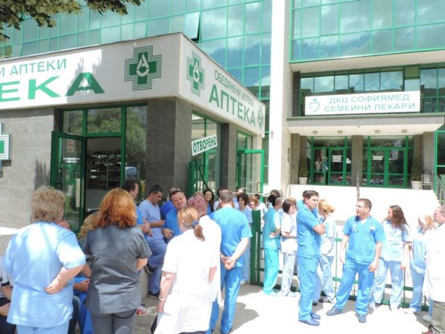 Днес точно в 12:00ч. медиците от МБАЛ "Софиямед" излезнаха на предупредителен протест пред сградата на лечебното заведение.