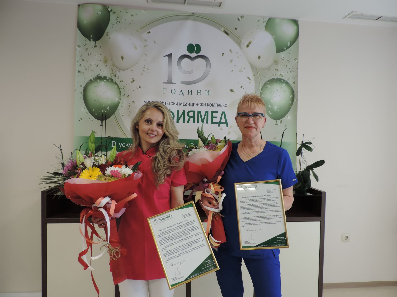 Д-р Йордан Пелев, управител на УМБАЛ „Софиямед“, също приветства професионалистите по здравни грижи, като каза: „Вие продължавате всеки ден да давате пример за вдъхновяваща самоотверженост и професионализъм, забравяте умората и продължавате грижата си за пациентите. Пожелавам здраве на вас и на вашите семейства, и нека се чувствате истински щастливи на работното място!“ Д-р Пелев връчи на Магдалена Серафимова и на Нели Филипова специални поздравителни адреси по повод празника.
