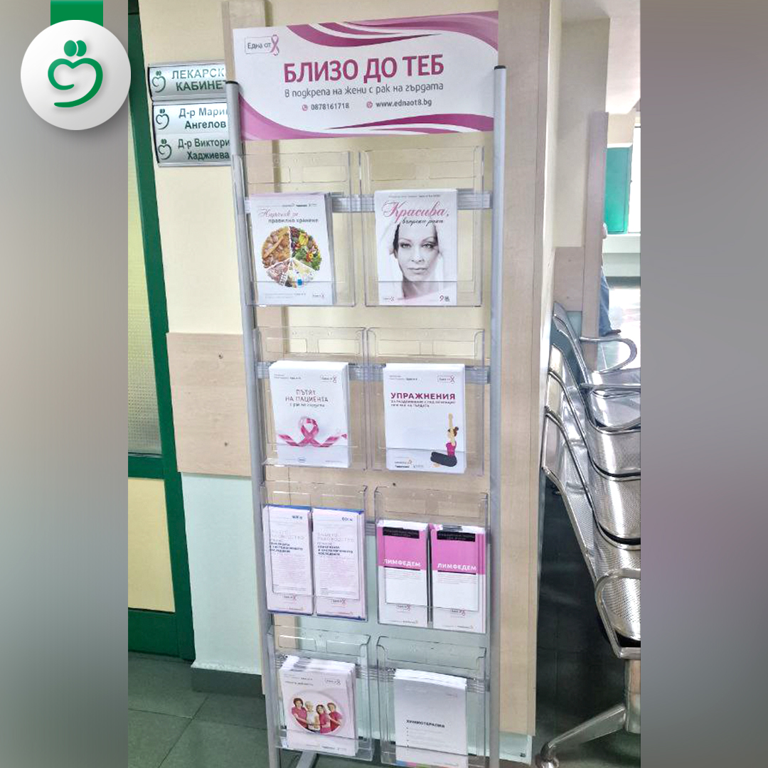 На стелажа на „Една от 8“ „Близо до теб“ в УМБАЛ „Софиямед“ дамите с диагноза ще намерят информационни брошури с полезна информация като: