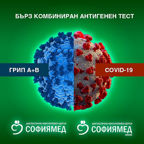 ДКЦ „Софиямед“ и ДКЦ „Софиямед“ -Люлин предлагат възможност за провеждането на комбиниран бърз антигенен тест за COVID-19 и грип A+B . Диагностичният тест се използва за качествено откриване на антигени на коронавирус и на грип A и B от назофарингеален секрет с помощта на бърз имунохроматографски метод.